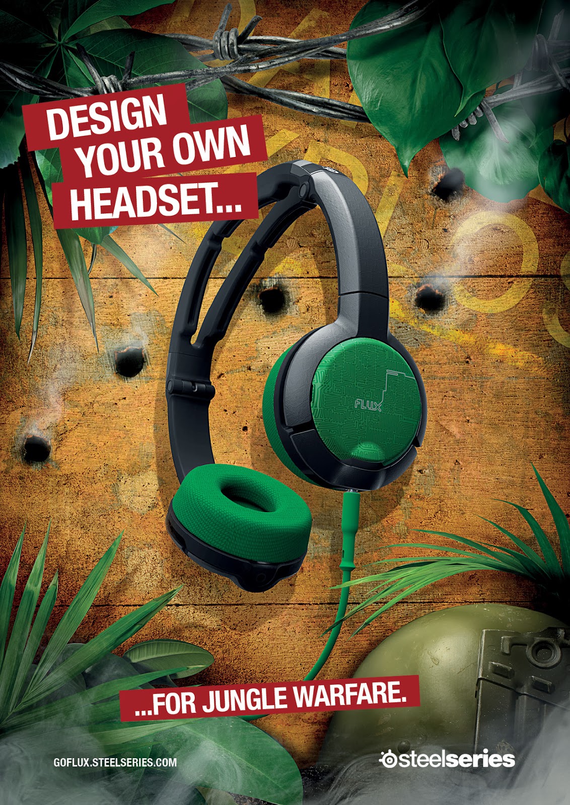 Concept: Sound is very important to progamers, so we focused on the experience and the many details that a headset will pick up during a game; Footsteps, team members speak, gunfire, approaching enemy missiles and so on...We used real progamers wearing our headsets and I photoshopped the background.